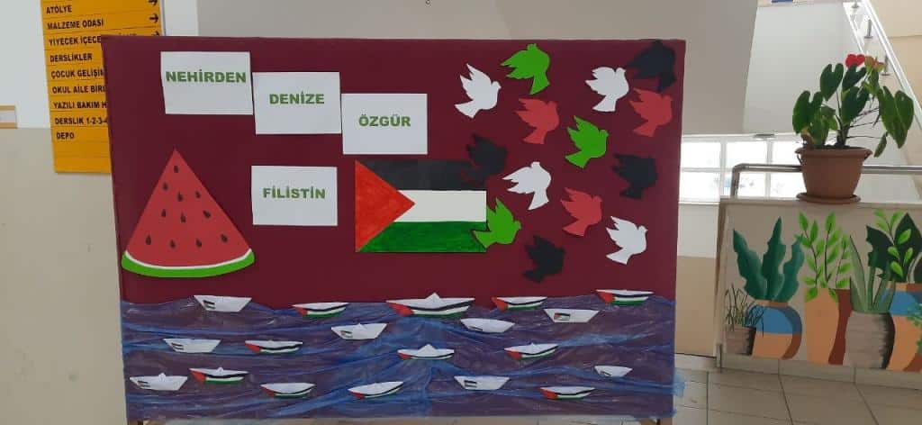 Milli Eğitim Bakanlığımızın "Filistin Farkındalık Etkinlikleri "kapsamında Erdem ,Değer ,Eylem modeliyle bütünleştirecek, evlatlarımızın sorumluluk bilincinin eleştirel düşüncelerinin demoratik duyarlılılıklarının ve insan hakları bilincinin artması konulu Filistin etkinliğimizi okulumuzda coşkuyla gerçekleştirdik.